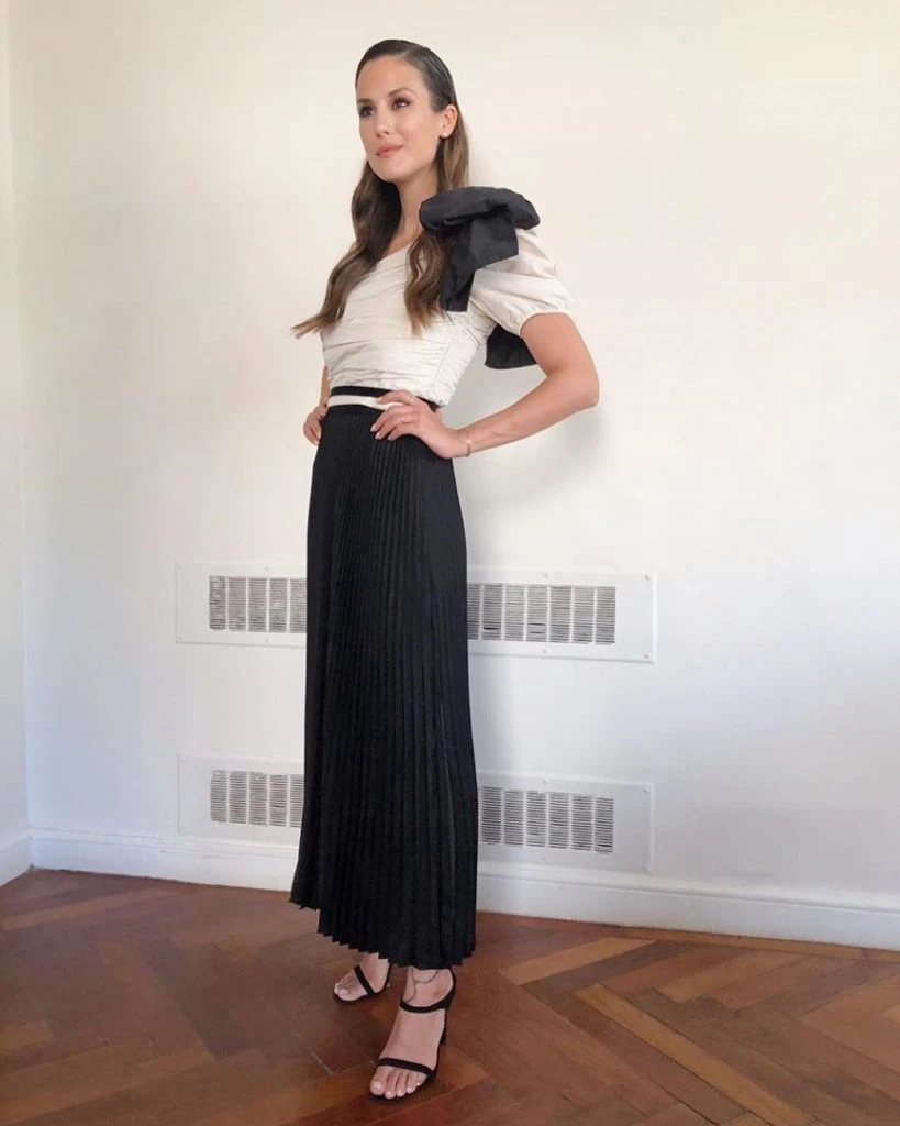 La clave es llevar siempre las polleras plisadas combinada con prendas ajustadas al cuerpo para que las formas queden equilibradas.