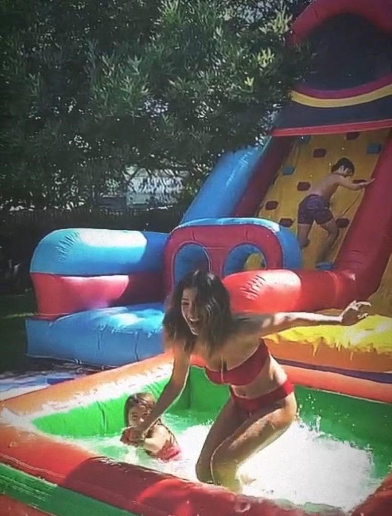 También Benjamín Vicuña participó del festejo y, si bien no usó el tobogán, estuvo gran parte del tiempo en la pileta junto a la pequeña Magnolia.
