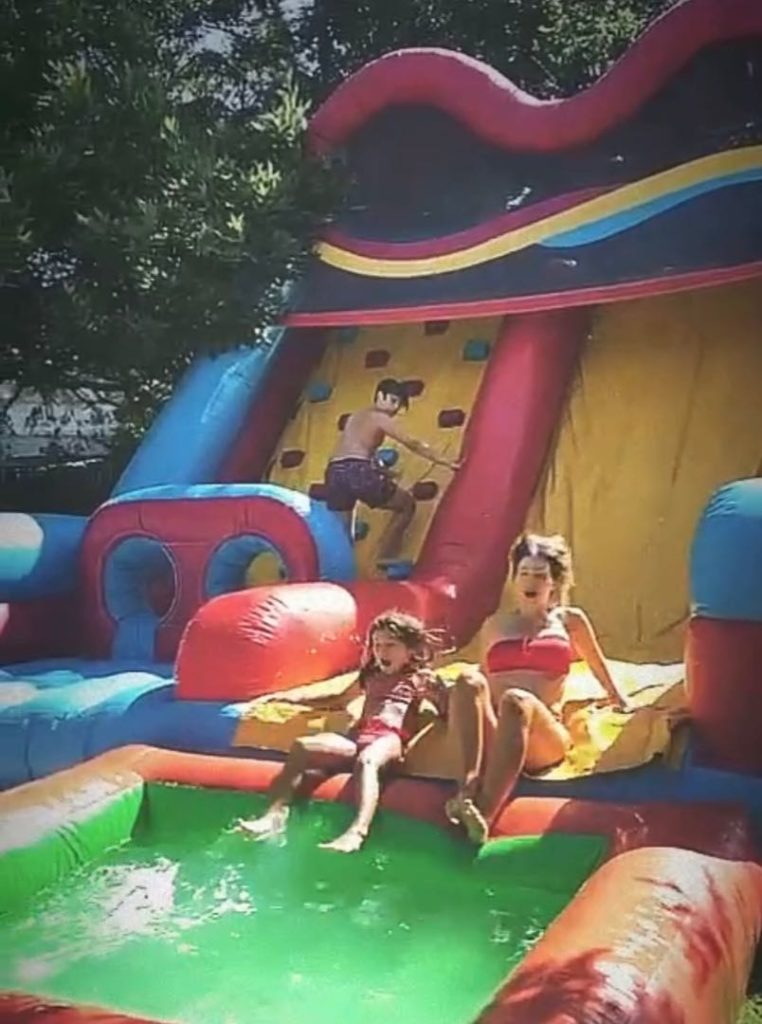 En el parque de la casa de la China y Vicuña, instalaron dos toboganes gigantes y las más entusiasmadas con tirarse fueron, justamente, la China y Rufina.