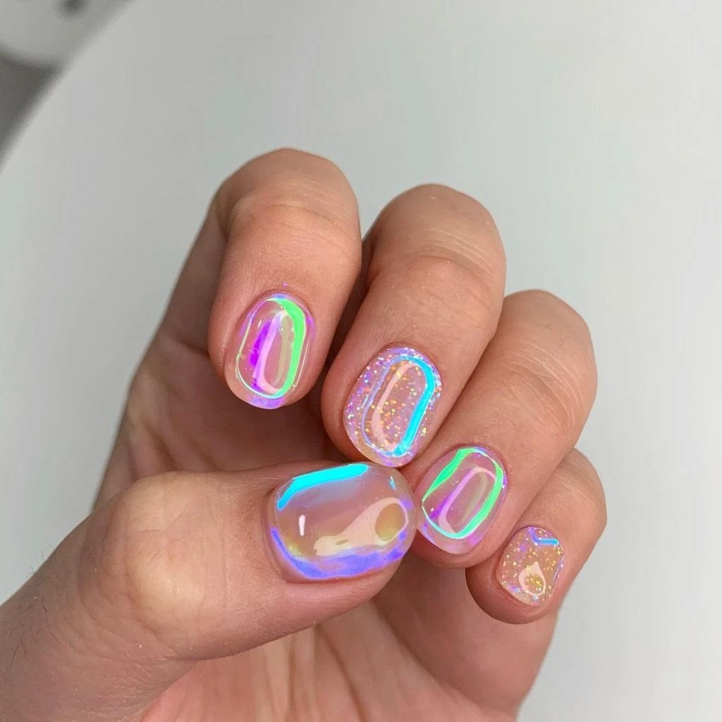 Esta manicura tiene, además, la característica de cambiar de color según cómo le de la luz. Y tiene la ventaja de ser fácil de lograr: sólo necesitás un esmalte de uñas con propiedades reflectantes.