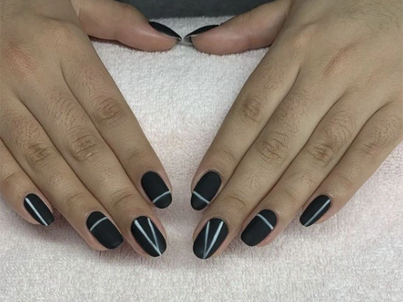 El esmaltado consta de varios pasos: primero, una capa de base. Luego, dos de color rosa pálido o de un tono lo más similar al de la piel posible. Para finalizar, se dibuja en blanco el borde de la uña para destacarlo.