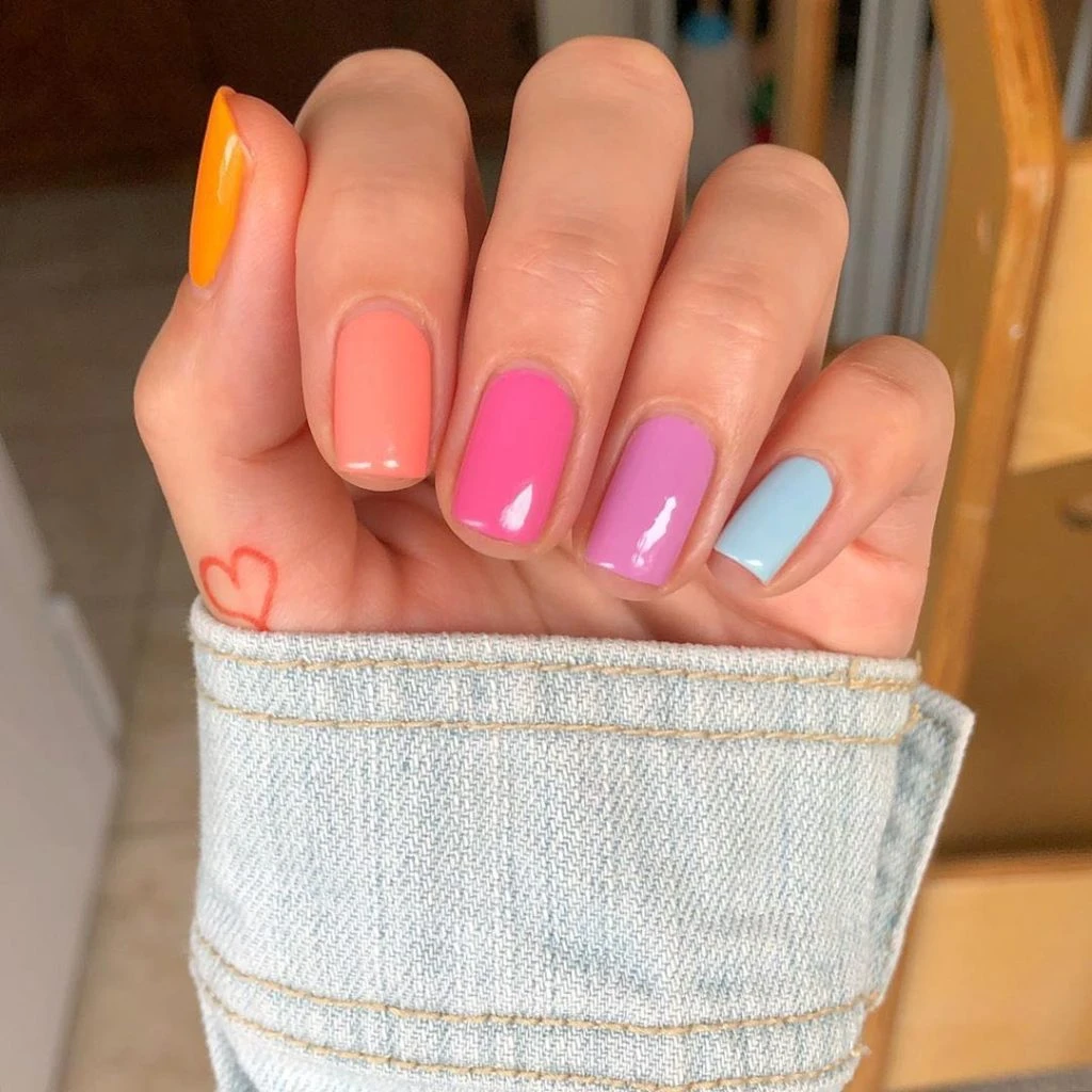Una uña de cada color. Pueden ser engamadas o no. Acá te mostramos ideas para inspirarte y copiar.