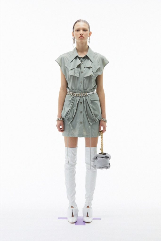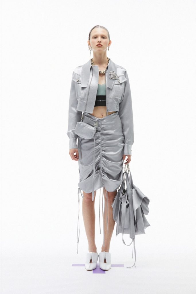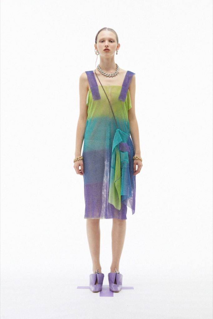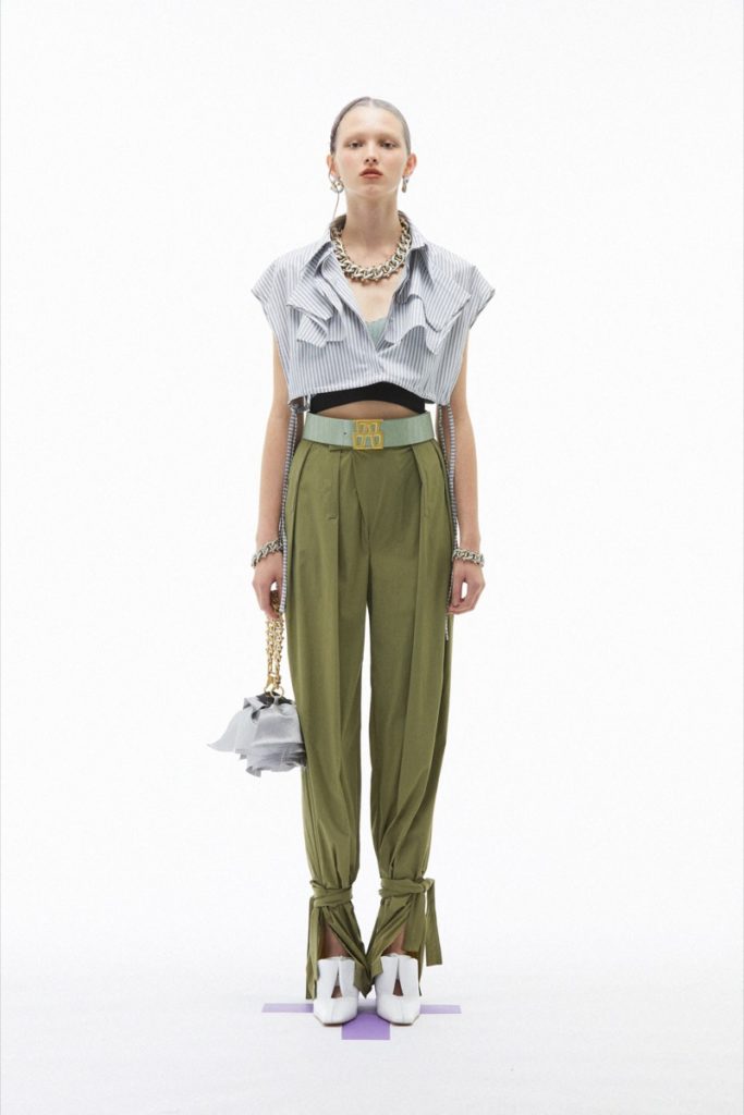 La etiqueta presentó looks pensados para una mujer cosmopolita con los colores pasteles liderando la colección. Vestidos con diferentes recortes y largos fueron el eje de una silueta casi futurista que se aggiornaban con cadenas metálicas. Cinturas marcadas, piernas al descubierto y hombros destacados elaborados con un textil ecológico que ayuda a reducir el uso de los recursos hídricos .