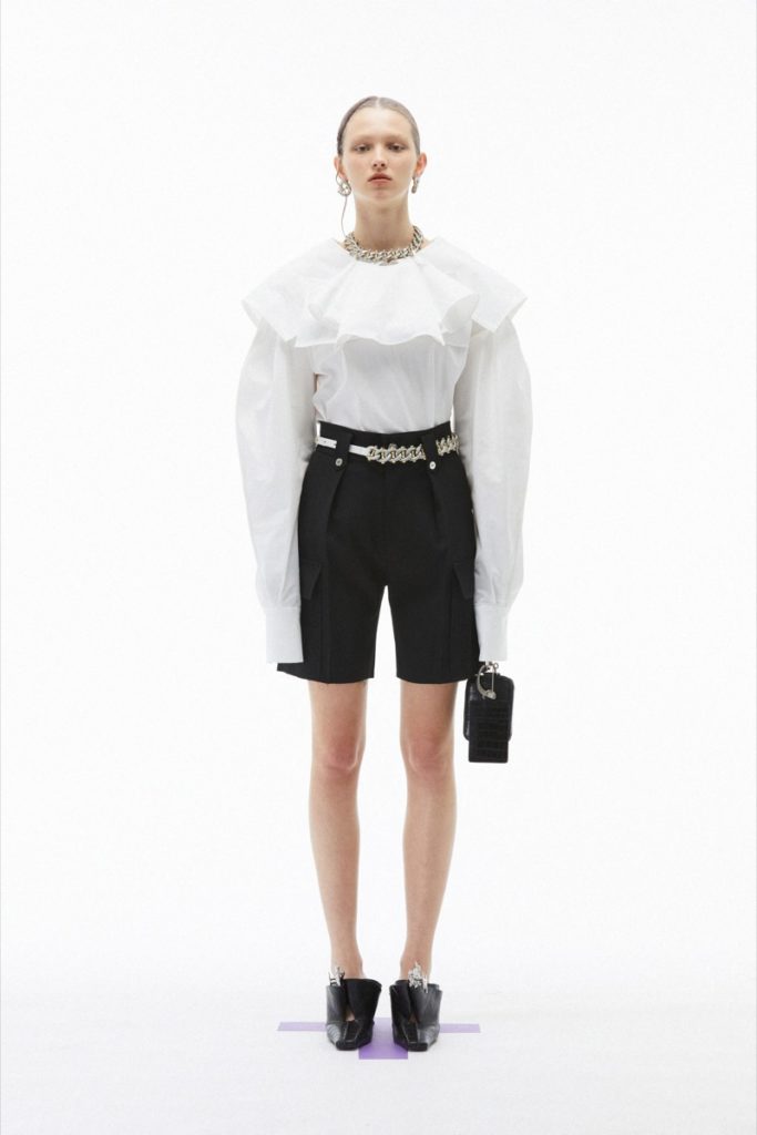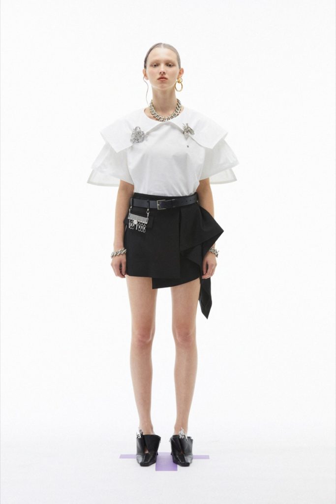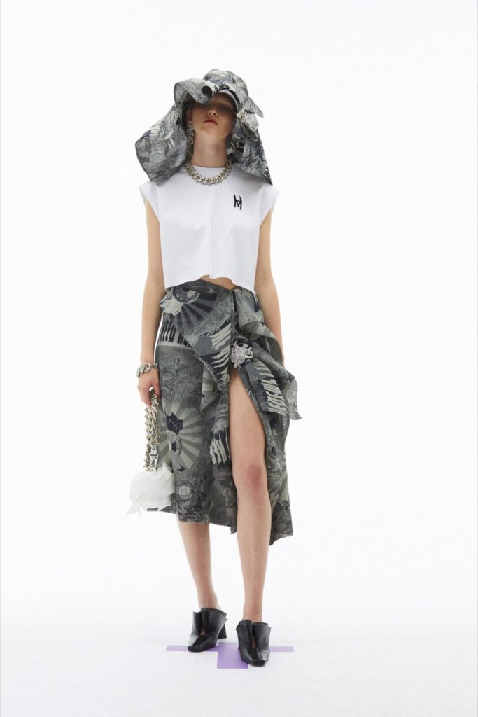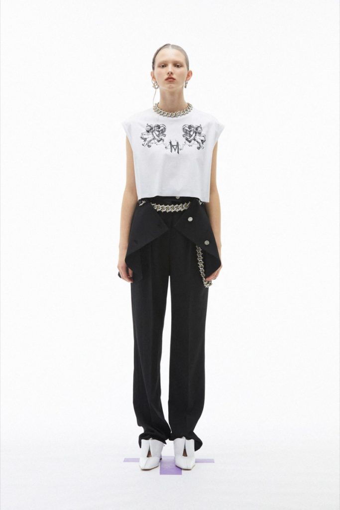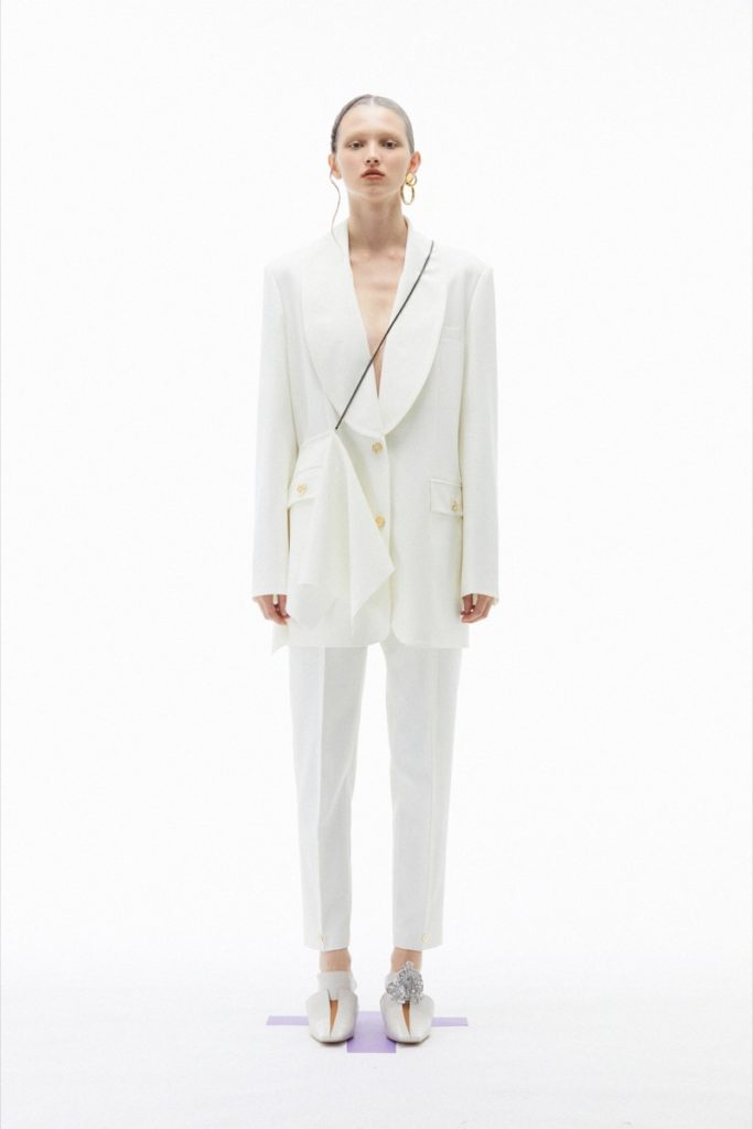 La etiqueta presentó looks pensados para una mujer cosmopolita con los colores pasteles liderando la colección. Vestidos con diferentes recortes y largos fueron el eje de una silueta casi futurista que se aggiornaban con cadenas metálicas. Cinturas marcadas, piernas al descubierto y hombros destacados elaborados con un textil ecológico que ayuda a reducir el uso de los recursos hídricos .