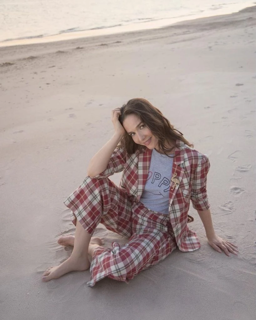 O la de repetir el print del pantalón y del blazer, como lo es en este caso, el escocés.
