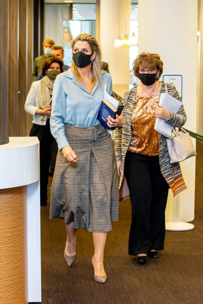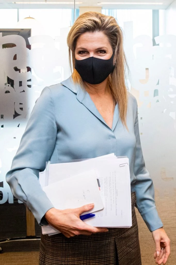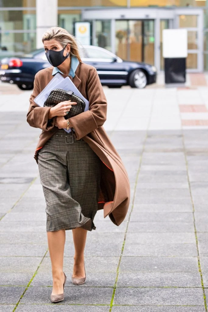 La reina de Holanda apuesta al celeste y camel y logra una combinación perfecta