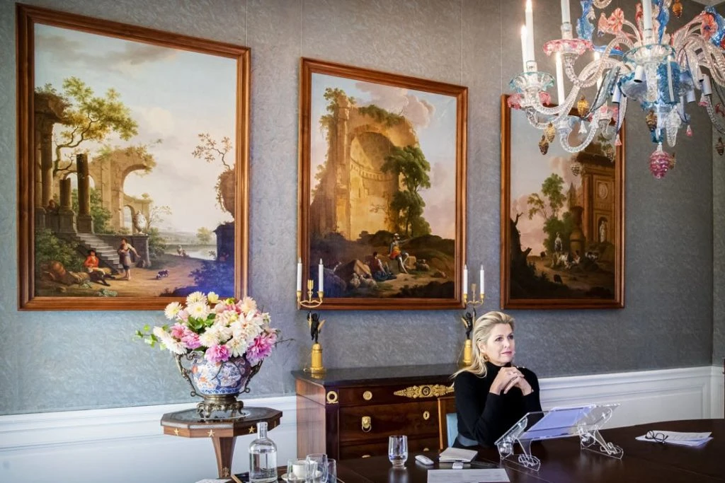 La reina de Holanda volvió a aparecer en una serie de imágenes durante una nueva videollamada de trabajo. Y además de su elegante beauty look del que ya hicimos referencia, llamó la atención el escenario de la reunión.