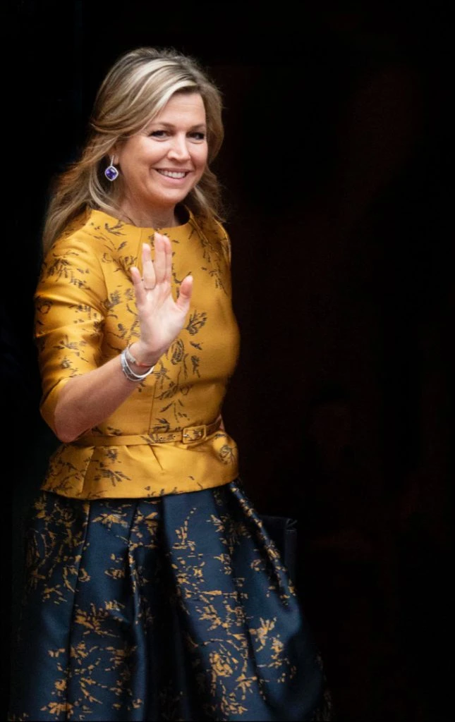 Máxima usó dos looks en un mismo día para presentarse en las tradicionaes recepciones por Año Nuevo en el Palacio de Amsterdam. El primer look que eligió con estampa bordada en azul y gris no fue del todo acertado, algo raro en ella que siempre se ve espléndida. Sin embargo, el outfit posterior fue espectacular.