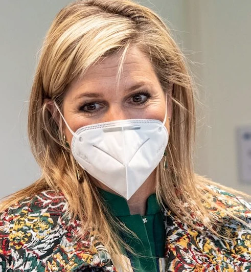 En el contexto de la lucha contra el coronavirus, la Reina de los Países Bajos visitó un centro que trabaja en la fabricación de respiradores. Usó barbijo y no renunció a su tradicional energía y glamour para vestirse.