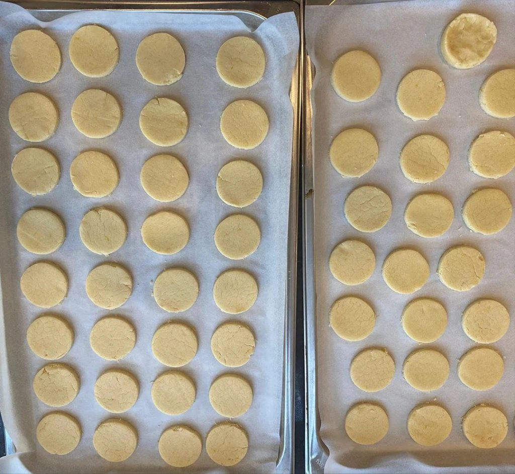 - Paso 6: Luego, colocá las rondas en una bandeja para hornear forrada con papel de hornear, separadas aproximadamente 2 cm.