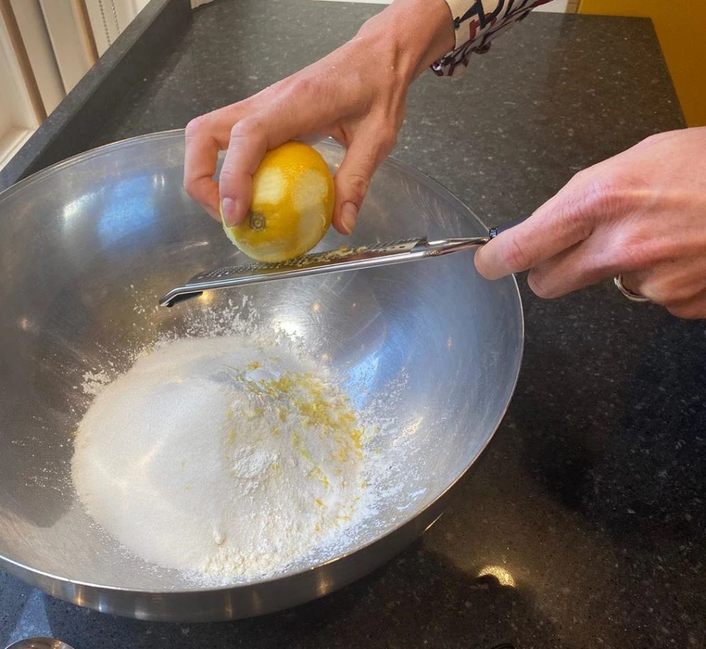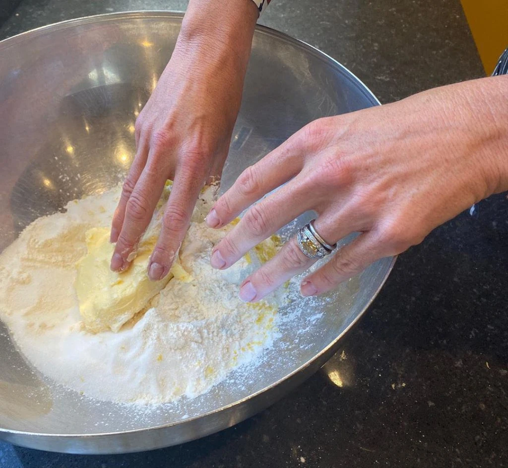 - Paso 2: Mezclá todos los ingredientes secos con la manteca ablandada en un bowl. Agregá 2 cucharadas de jugo de limón.