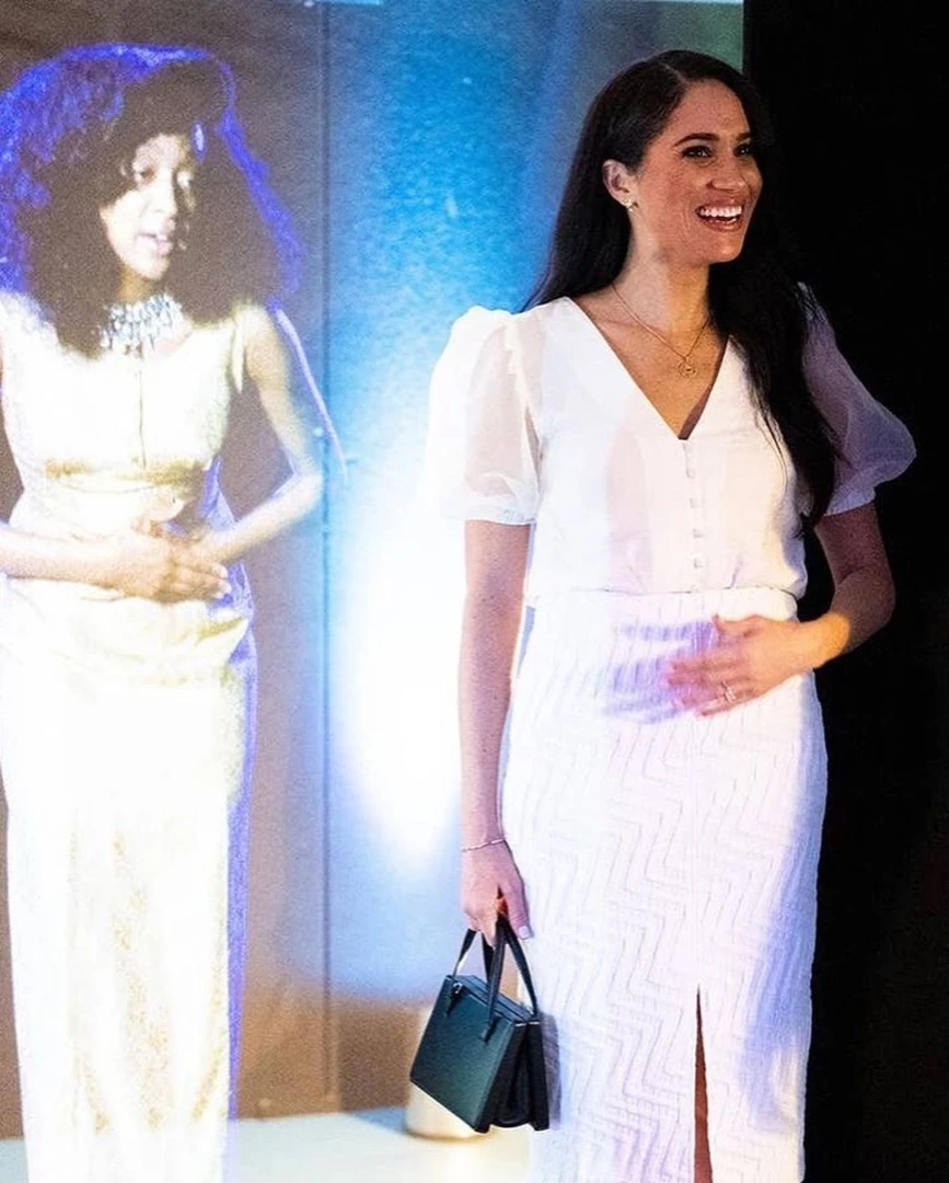 En esta visita a Londres, Meghan decidió vestirse solo con marcas británicas, Victoria Beckham fue otra de las elegidas por la duquesa de Sussex.