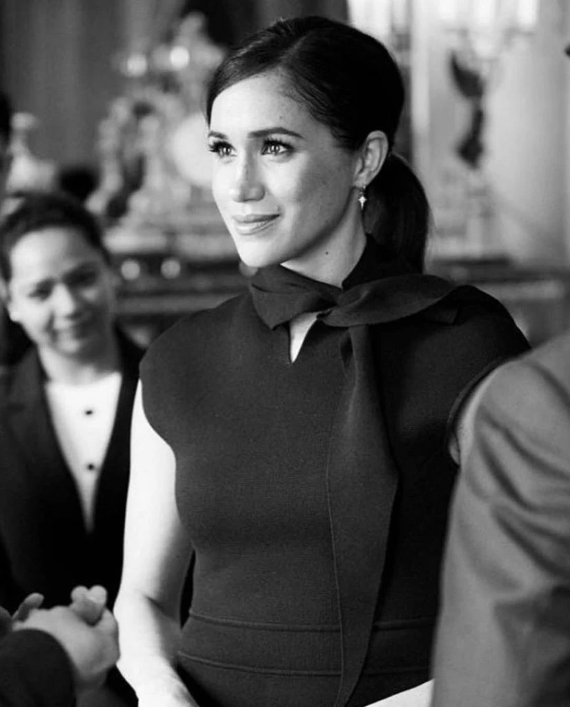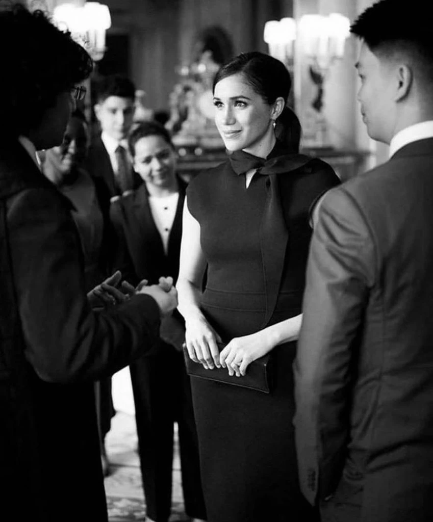 Durante los días en los que la Duquesa de Sussex estuvo en Londres (ahora ya está en Canadá), para uno de los eventos que tuvo en el Palacio de Buckingham se decantó por un sofisticado y elegantísimo vestido.