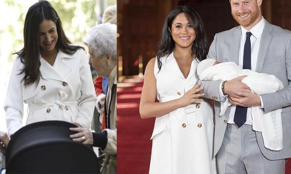 Begoña se lookeó con un trench cuando presentó a su hija recién nacida al público el día de las elecciones en Madrid, solo unas semanas después de que Meghan vistera un conjunto similar para su primera sesión de fotos con Archie. Además, la política llevó el pelo suelto al igual que Meghan.
