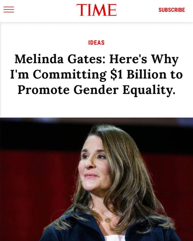 En el ensayo que publicó en Times, la mujer de Bill Gates fundamenta una a una las razones para invertir su dinero en esta causa. Comienza su argumentación diciendo que "en el ranking de compañías Forbes 500, hay más hombres que se llaman James que mujeres dirigiendo esas empresas"