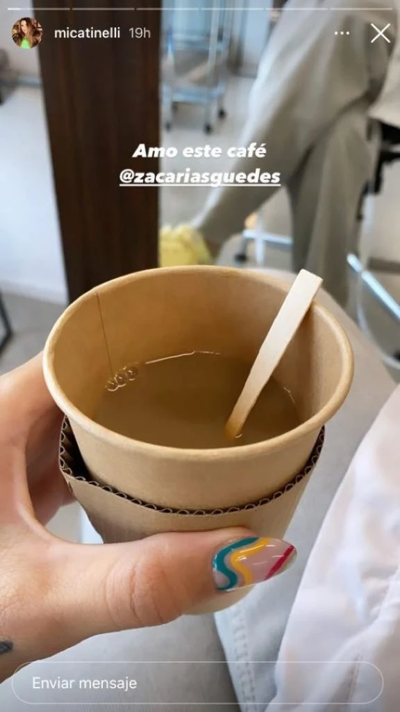 Mica Tinelli mostró sus uñas y nos dimos cuentas de que lleva uno de los nail art del momento. Sobre una base milky nail se hizo un diseño arcoiris.