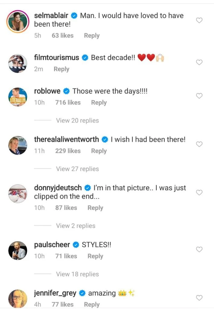 Desde Selma Blair con su "Hubiera amado estar ahí", comentarios como los de Justine Bateman (su "hermana" en la serie "Lazos Familiares") a su exnovia de ese entonces, la actriz de "Dirty Dancing", Jennifer Grey quien posteó: "increíble".