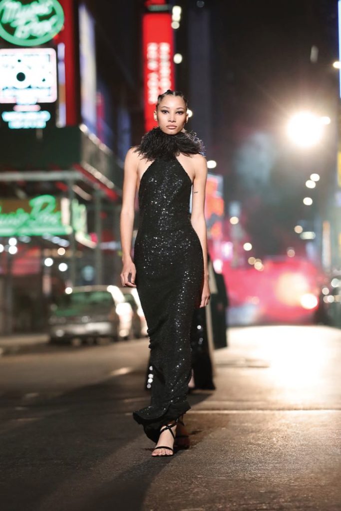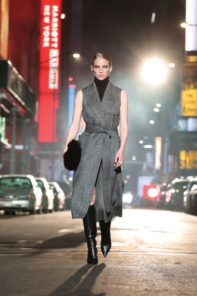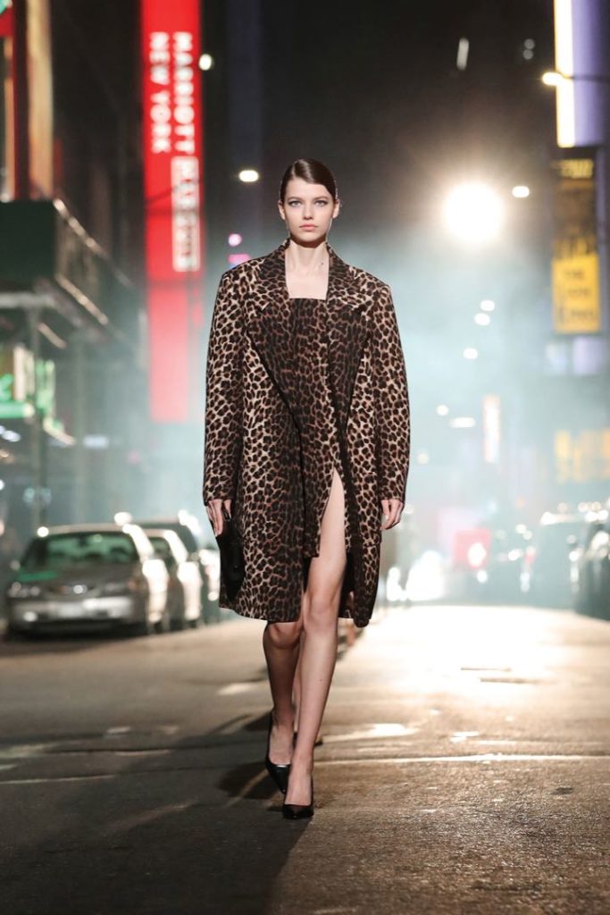 La pasarela urbana mostró vestidos de manga larga con lentejuelas, combinados con maxi abrigos hasta los pies, minivestidos metalizados mezclados con blazers oversize, mucha estampa animal print, el trench como protagonista de varios looks y pantalones sastre.