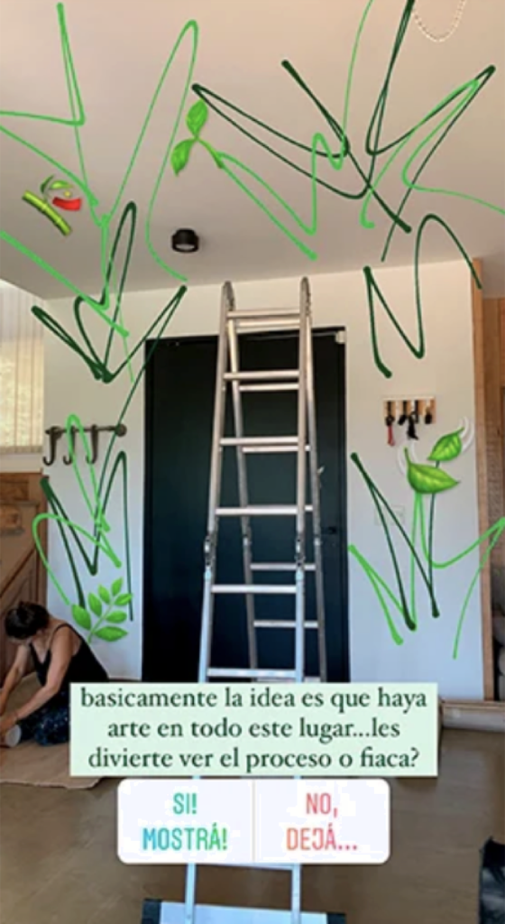 "Básicamente, la idea es que haya arte en todo este lugar" comenzó la actriz a contar en sus historias.