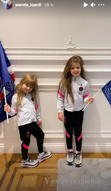Y como buenas hinchas, se lookearon de pies a cabeza para animar al equipo de su papá el día que el PSG jugó el clásico europeo enfrentando al Barcelona de Lionel Messi. "Y estas pequeñas", fua la frase elegida por Wand para describir la foto de sus hijas.