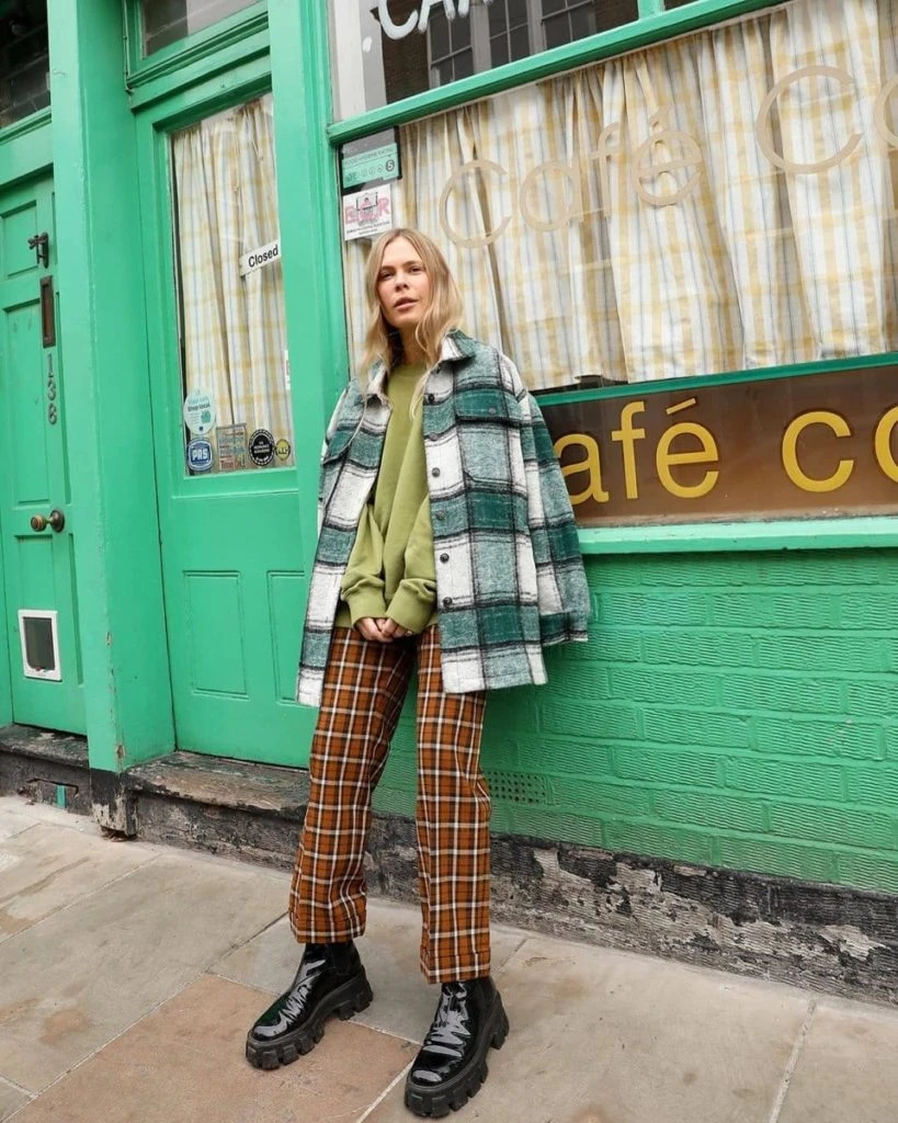 Con una estética grunge salida de los 90, los nuevos abrigos se llevan con corte oversize y con cuadros grandes.
