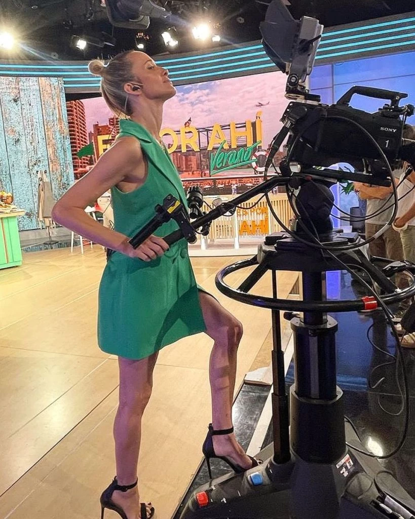 Por su parte, Julieta Parndi eligió llevar el chaleco largo a modo de vestido y en uno de los colores de la temporada, el verde.