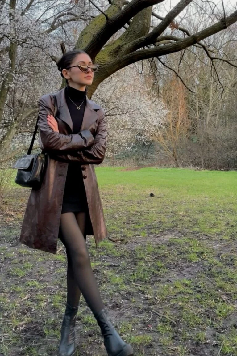 El marrón oscuro funciona como un clásico infalible para looks que busquen ir en sintonía con el otoño. Dicho color se asemeja a diferentes elementos característicos de la estación: tierra húmeda, hojas secas y árboles. Por ende, se trata de uno de los tonos que mayor conexión poseen con la época.