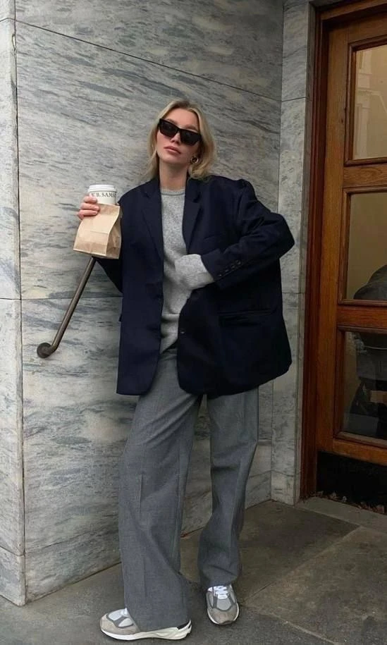 Este look es un clásico actualizado. Elegí un jean recto, wide leg o mom fit y sumale un blazer para elevarlo, pero al ser oversized no pierde comodidad. Completá con zapatillas o mocasines.