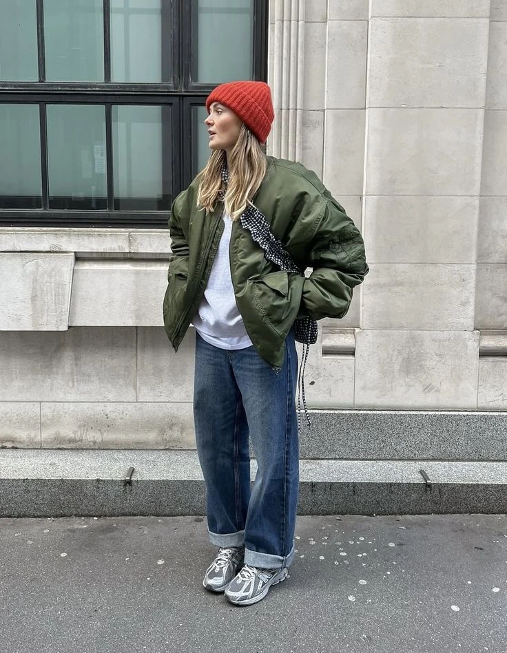 Elegí pantalones joggers de algodón con buen corte y sumales una remera básica. La campera oversized le da un toque cool y relajado. Completalo con zapatillas clásicas tipo dad sneakersu otras más urbanas de algún color.