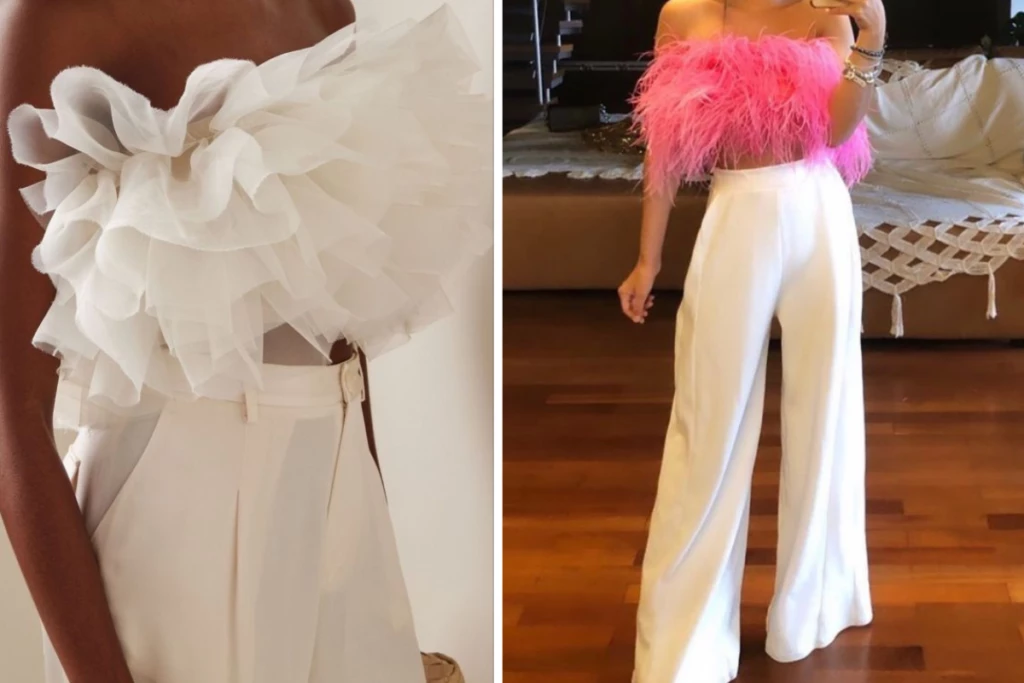 Para estar más elegante y preparada para una ocasión especial, los pantalones sastreros son ideales para combinarlos con el tulle top, dado que le agrega un toque de sofisticado.