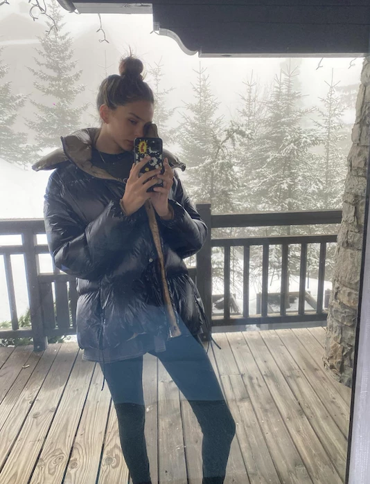 Para salir, se abrigó con la puffer, sumó sneakers y una gorra estilo cap. Con la mini bag bandolera logró un sofisticado look urbano.