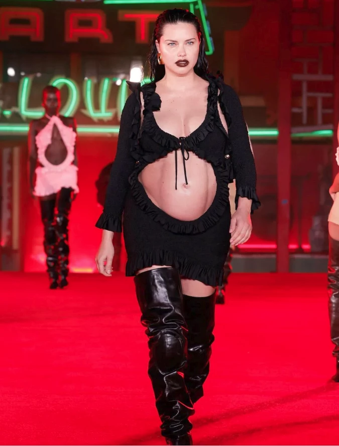 Adriana Lima, al igual Irinia Shayk, Lily Aldridge, Alessandra Ambrosio, Miranda Kerr, es otra de las tantas modelos que se animaron a desfilar embarazadas.