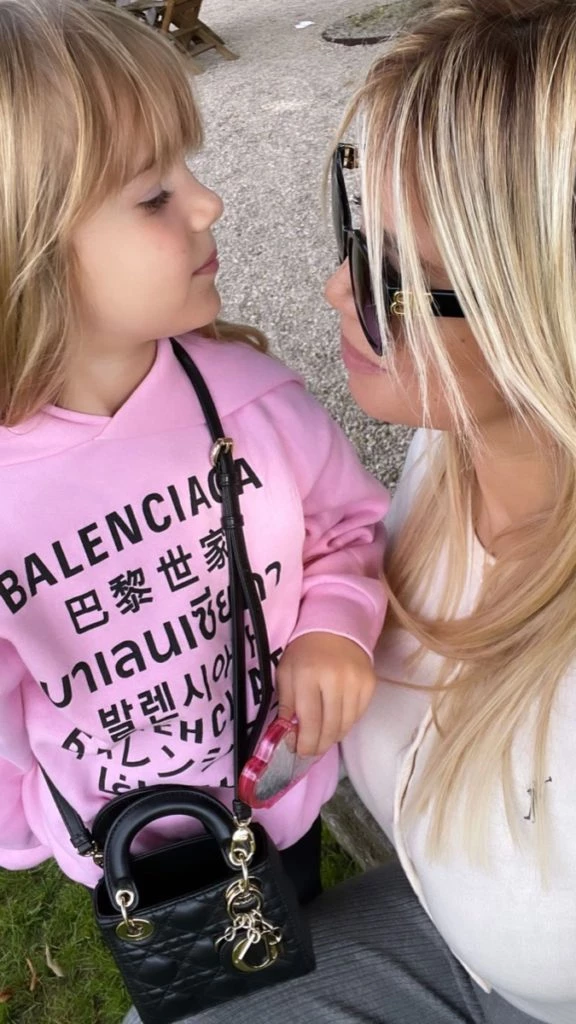 En una salida familiar, la empresaria compartió a sus seguidores una historia donde contó que la más pequeña, Isabella, le pidió prestada una cartera de su gran colección para poder completar su look.