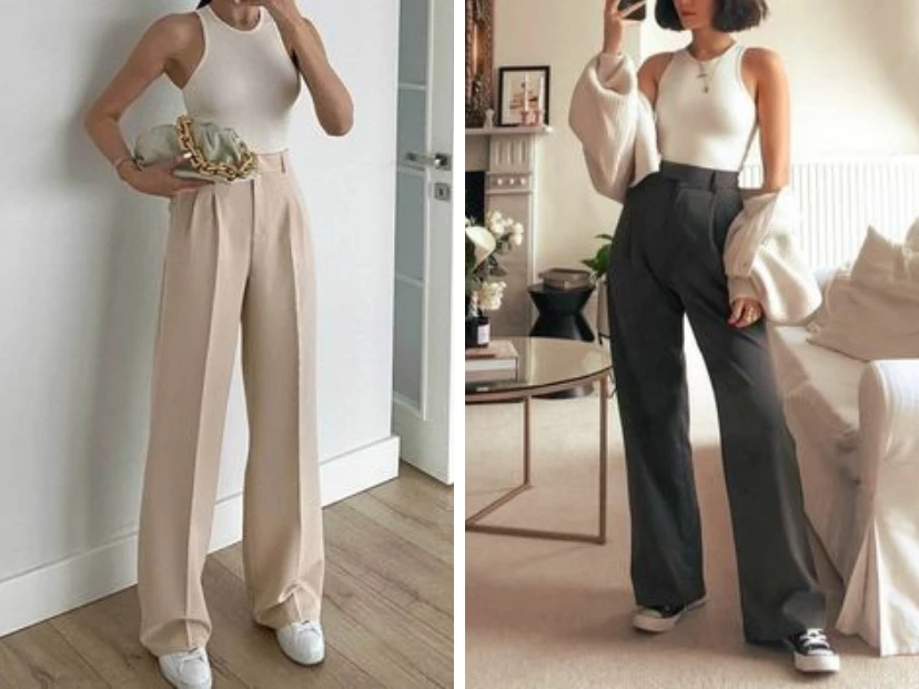 El tank top es una camiseta simple, pero corta, por lo que deja al descubierto la panza. Aunque, si buscás estar formal para ir a una reunión, la mejor idea es usarlo con un traje básico y unos pantalones sastreros tiro alto.