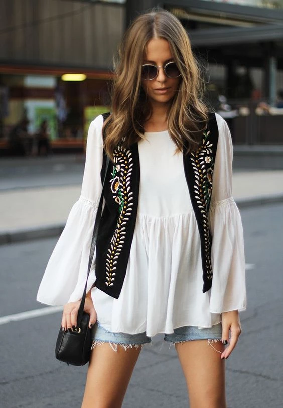Podés poner tu chaleco sobre una blusa blanca de algodón y tus shorts denim, par aun lookazo informal.
