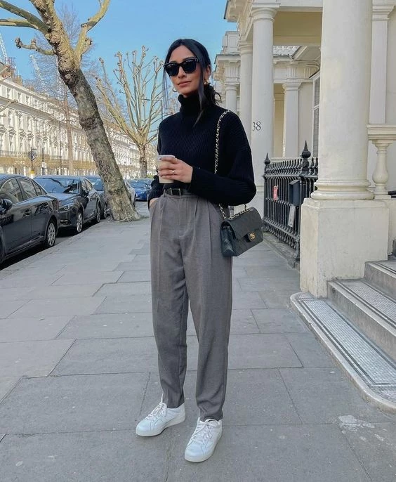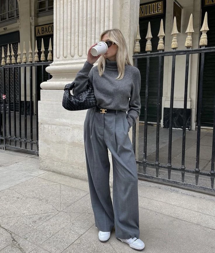 Es la prenda más comodín del guardarropas y cualquiera que sea el diseño que adoptes, ya sea pantalones de vestir, palazzo, leggings, pantalones rectos, pantalones de cintura alta e incluso jeans en tonos grises vas a lograr una silueta muy elegante y chic.