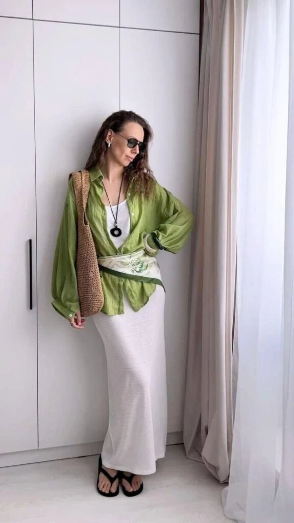 - Con faldas largas o midi: refuerza el aire relajado y femenino.