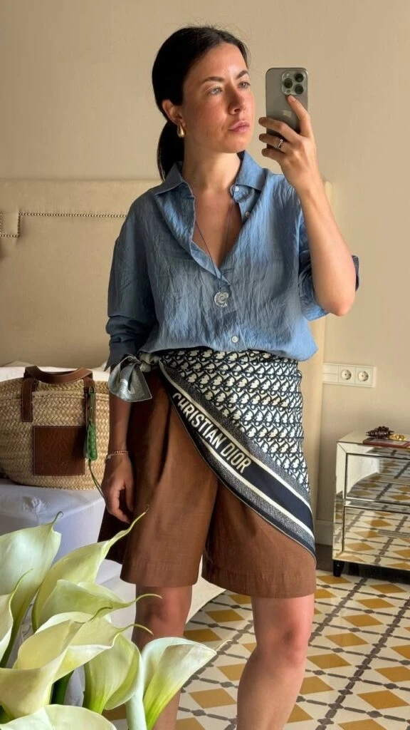 Según las fashionistas, esta forma de llevar el pañuelo funciona como un guiño al pareo playero, pero con un toque urbano y sofisticado. Es ideal para transformar un look básico y darle un aire creativo sin esfuerzo.