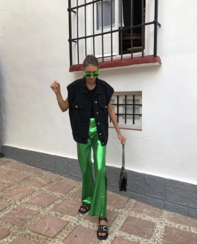 Claramente los jeans son un clásico absoluto que no se van a ningún lado. Sin embargo, la próxima primavera/verano 23-24 van a tener una seria competencia con los pantalones metalizados que van a ir ganando protagonismo. Los vimos tímidamente el año pasado en plateados y dorados, sin embargo ahora llegan también en tonos más estridentes como el rosa o el verde. Un estilo que promete hacernos brillar y no nos hará pasar desapercibidas. ¿Cómo usarlos? Te contamos a continuación.
