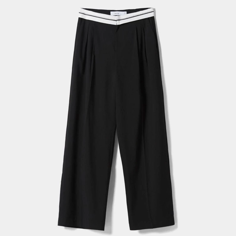 A pesar de que tristemente no haya un Bershka en Argentina, esta tendencia es fácil de copiar. Solo debemos agarrar un pantalón sastre oversize y darle vuelta la cintura, para que la parte blanca interna, quede afuera. Así se logrará un look súper canchero, que se combina con zapatillas.