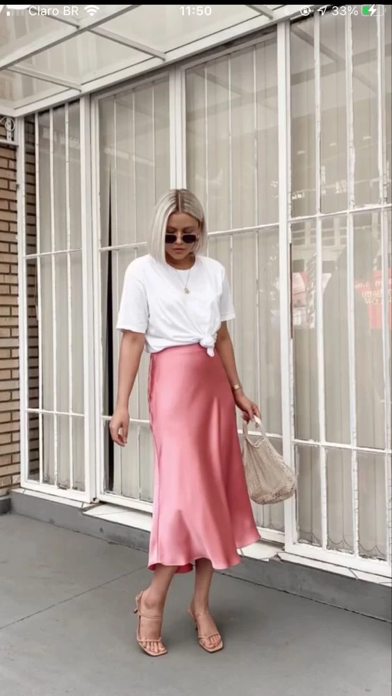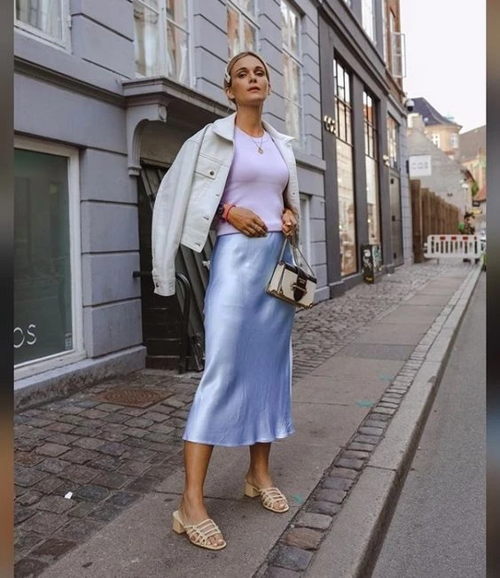 Las faldas serán satinadas, fluídas, con largo midi y en un sinfín de colores. Por su textura satinada es una prenda que irradia delicadeza y feminidad.