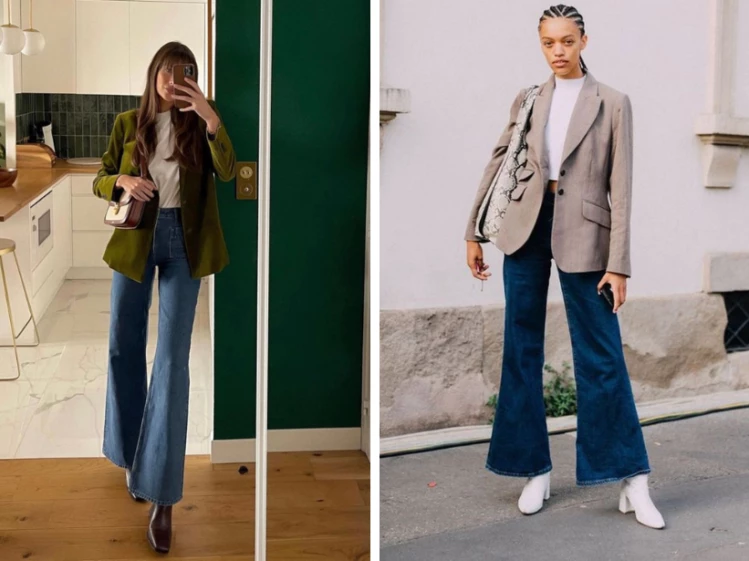 El jean acampanado remplazará al chupín, pero lo bueno es que se combina de la misma manera. Acá lo lleva con una campera oversize de jean. Un look muy actual y canchero.