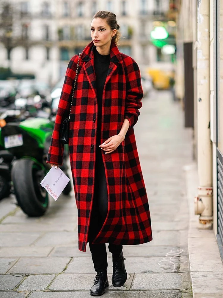 Un look negro completo + abrigo rojo = impacto asegurado. Desde trenchs hasta tapados de pelo, todo vale.