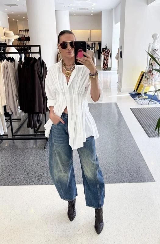 El jean barrel se volverá un básico que combina bien con zapatillas deportivas, sandalias de taco e incluso con zapatos pumps. La maravilla del denim es que se pueden construir estilismos tanto para ir a la oficina o para una salida más casual.