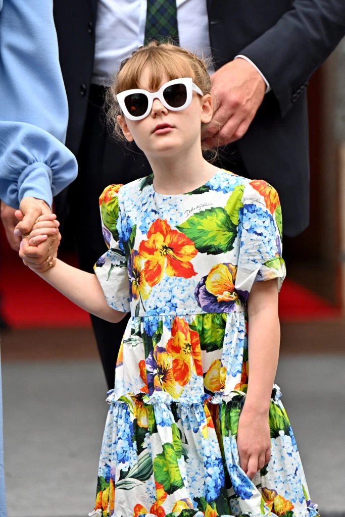 Lo combinó con zapatos nude y unos aros de diamantes. Y también se destacó su hija Gabrielle que se vistió con un diseño de Dolce & Gabbana con estampa floral. Y le sumó a su look unos lentes de sol muy de super star.