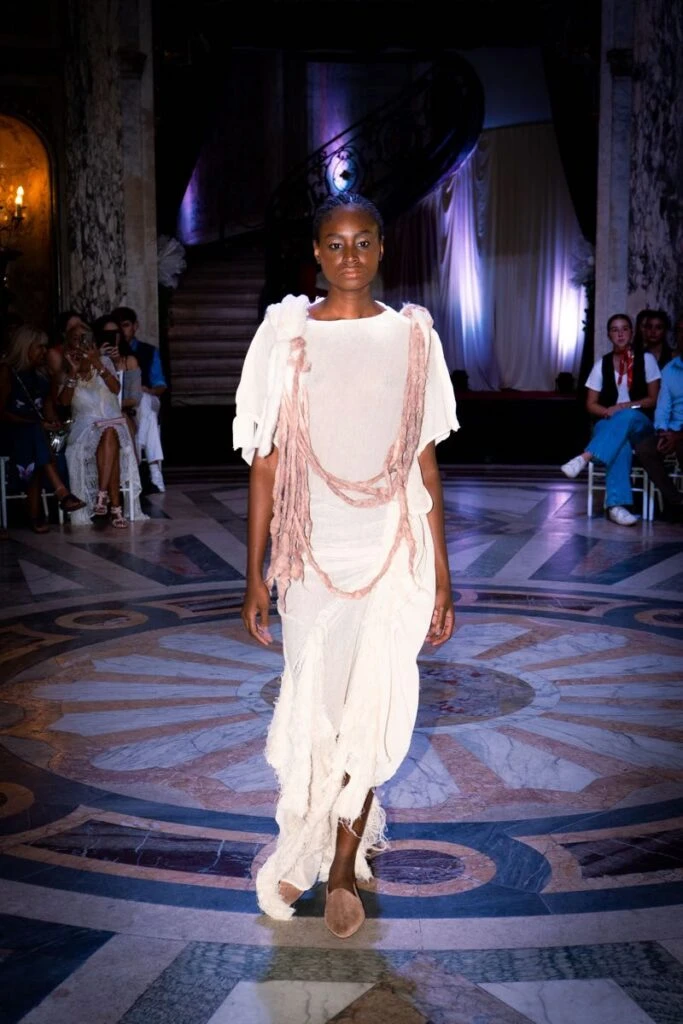 La diseñadora presentó "SENTIR" donde creó esta colección con la convicción de que la moda puede ser un acto de amor propio, una forma de vestir consciente y sostenible donde tu exterior refleja la belleza que llevas dentro. "SENTIR" es una invitación a conectar contigo misma, a vestirte con la verdad de quien sos.