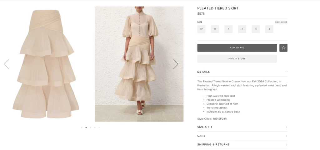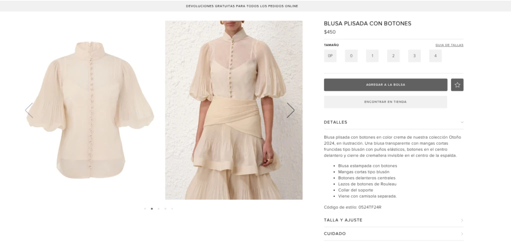 En esta ocasión, asesorada por su estilista Carolina Marafioti, la argentina atrajo todas las miradas gracias a su total look en color off white firmado por la marca internacional Zimmermann que pertenece a la última colección otoño 2024. En concreto llevó un conjunto compuesto por una blusa transparente plisada con mini botones en color crema y mangas cortas estilo farol. La misma tiene un valor de US$ 450 dólares.