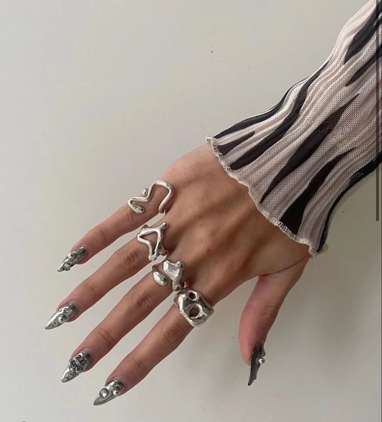 Podés usarlos solos como pieza protagonista o combinar varios en diferentes dedos para un efecto más maximalista. También funcionan muy bien con uñas prolijas o manicuras llamativas, ya que atraen la atención a las manos.