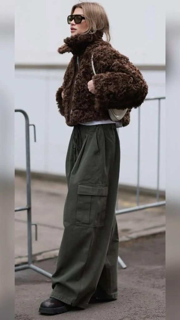 Los cargo pants forman parte del revival Y2K, donde la comodidad y los guiños al street style marcan la pauta. Influencers y celebridades los combinan con prendas de abrigo llamativas y calzado deportivo, logrando outfits versátiles que funcionan de día y de noche.