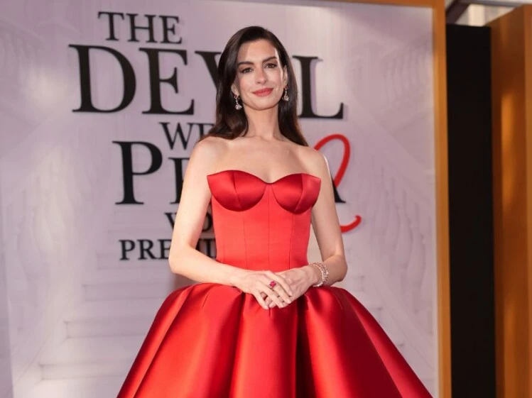 El estilismo elegido por Hathaway no pasó desapercibido, especialmente por el contexto de la película que la llevó a la fama. Con un guiño al universo fashion de “El diablo viste a la moda”, la actriz logró un look que dialoga con ese imaginario, pero desde una versión más madura y sofisticada.